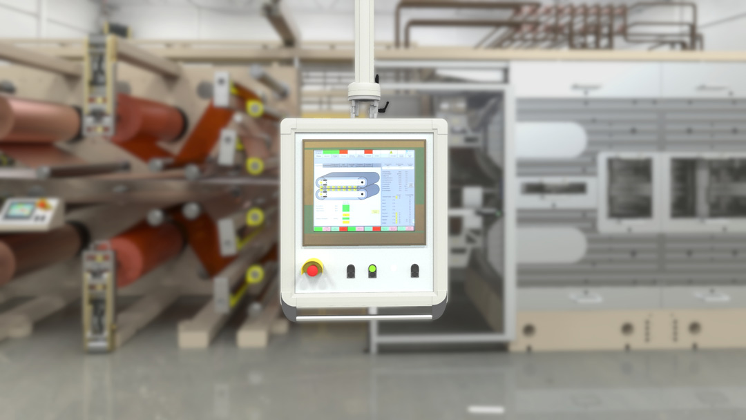 In each case, the respective components are run through the press between two endless steel belts – either individually or together. At the intake and the outlet, these steel belts are looped around heated steel drums. Pressure plates, with which heat and pressure are applied to the conveyed materials, are located between them in the so-called reaction zone. The temperature zones can be individually adjusted.